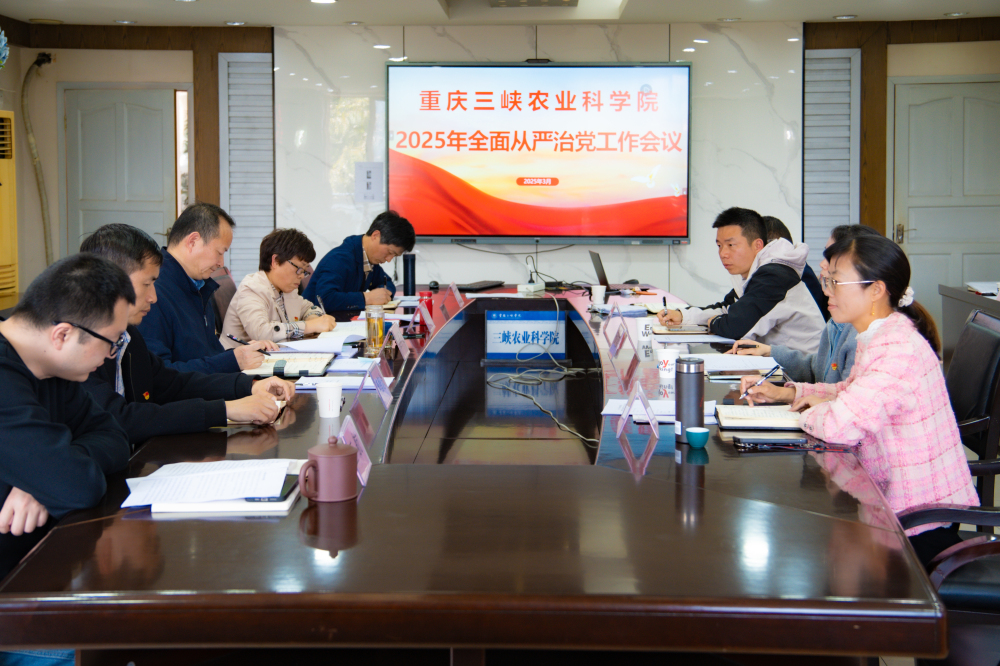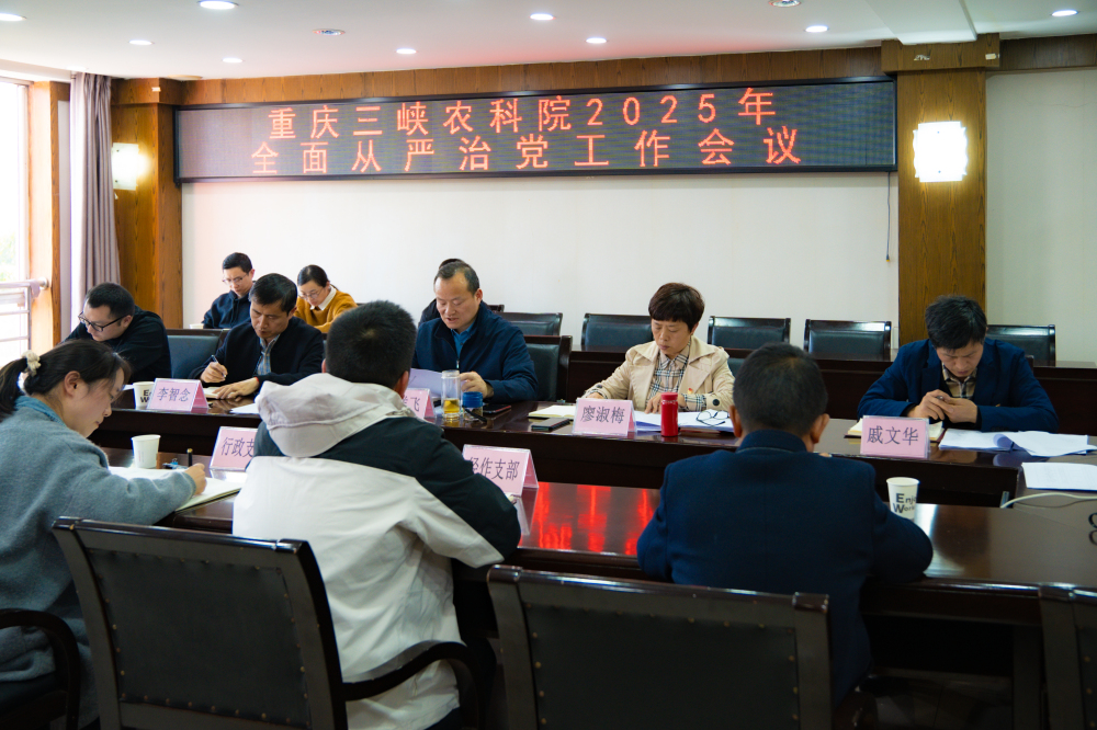 3月26日下午,重庆三峡农业科学院召开2025年全面从严治党工作会议,深入学习习近平总书记关于全面从严治党的重要论述,总结2024年工作成效,部署2025年重点任务。院党委书记、院长聂祥飞主持会议并讲话,纪委书记王航总结9728太阳集团2024年纪委工作,并部署2025年纪委重点工作。院领导班子成员、党支部支委及中层干部参会。