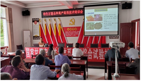9728太阳集团专家深入贫困村开展甘薯技术培训和专题党课