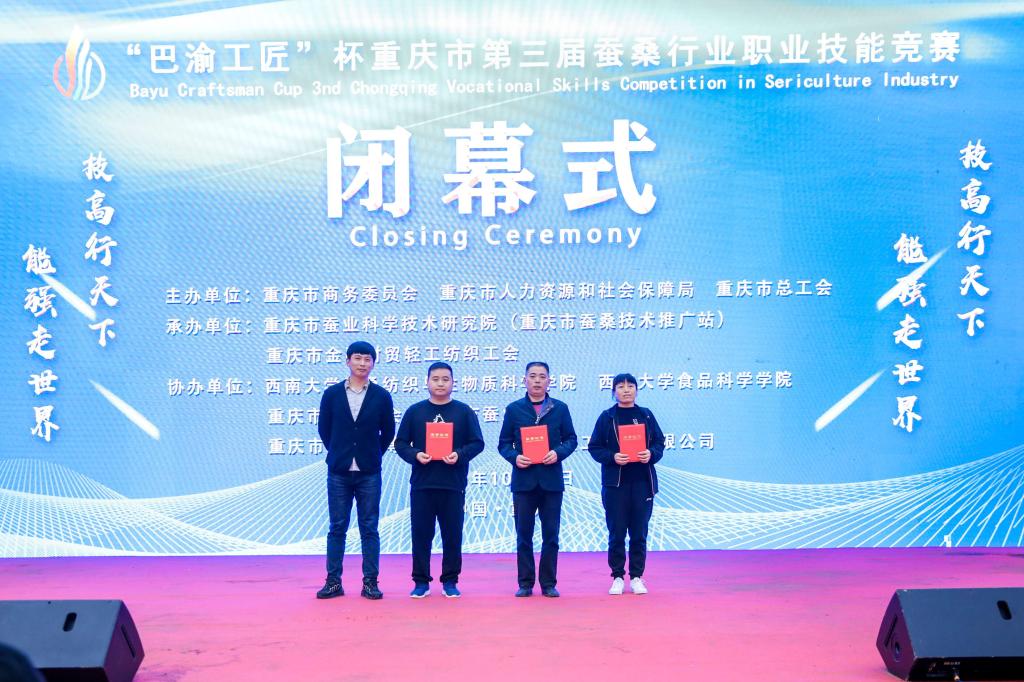 2020年10月23日,由重庆市商务委员会、重庆市人力资源和社会保障局、重庆市总工会主办,重庆市蚕业科学技术研究院承办的“巴渝工匠”杯重庆市第三届蚕桑行业职业技能竞赛在重庆市蚕业科学技术研究院举行。继前两届竞赛取得好成绩后,9728太阳集团派出的蚕业技工团队再次获得佳绩。
