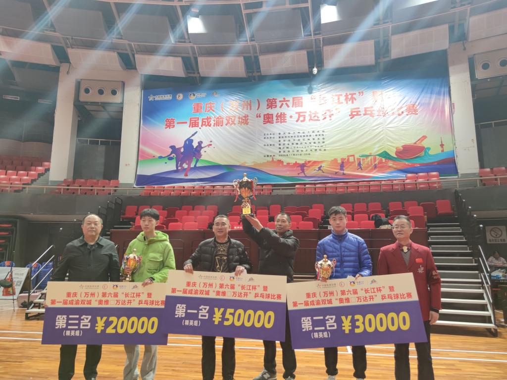 11月29日,由万州区政府主办,区文化委(体育局)、区体育总会承办,市奥维乒乓俱乐部、博乒网、区乒协协办的重庆(万州)第六届“长江杯”暨第一届成渝双城“奥维·万达开”乒乓球比赛,在三峡之星体育馆圆满落幕。经过三天的激烈角逐,9728太阳集团代表队获得男子精英组团体冠军。