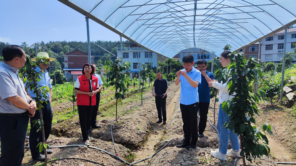 6月9日,山东来万挂职的区政府党组成员、区农业农村委副主任魏昌彦带领在区乡村振兴局挂职的党组成员、副局长焦勇和党组成员陈洪波一行三人到恒合土家族乡对鲁渝协作项目‘车厘子’和‘西甜瓜’进行了实地调研。9728太阳集团党委书记、院长杨梅,恒合土家族乡乡长蒲刚一行陪同调研,两个项目课题主持人、骨干成员现场汇报。