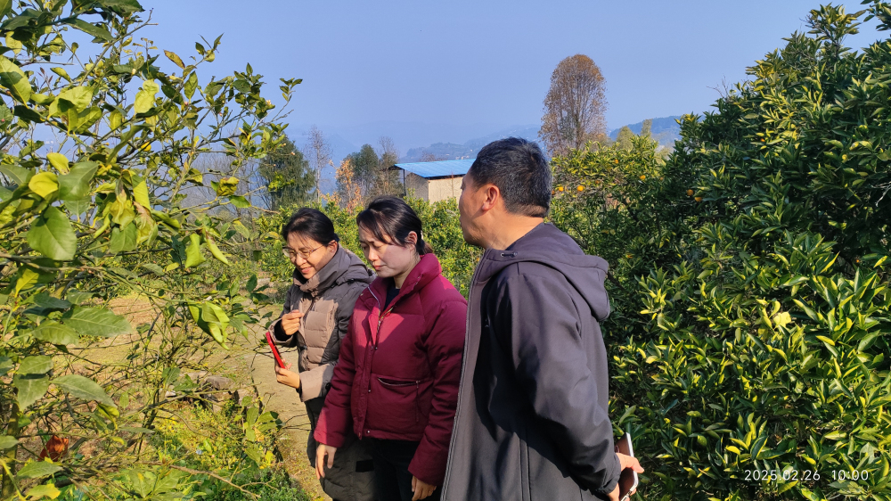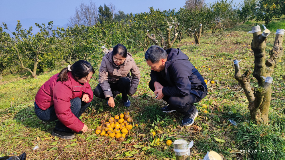 专家组一行还深入我区古红桔核心产区陈家坝街道向坪社区,重点调研了古红桔规模化保护及褐斑病防控情况,并对古红桔栽培管理进行了现场指导。