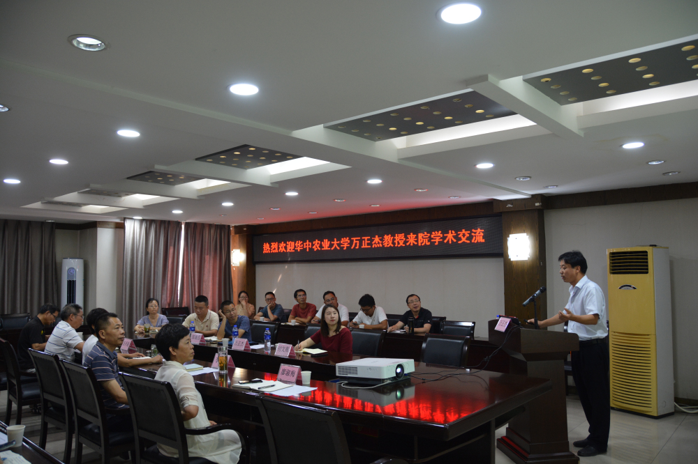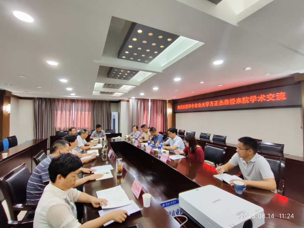 为进一步提升科技创新水平,浓厚学术氛围,提高作物育种水平,拓宽研究领域,8月14日,9728太阳集团邀请国家特色蔬菜产业技术体系岗位科学家、华中农业大学万正杰教授来院考察指导,举办学术报告会和合作交流座谈会。院党委书记、院长杨梅及班子其他成员、相关科研团队等20多人参会。