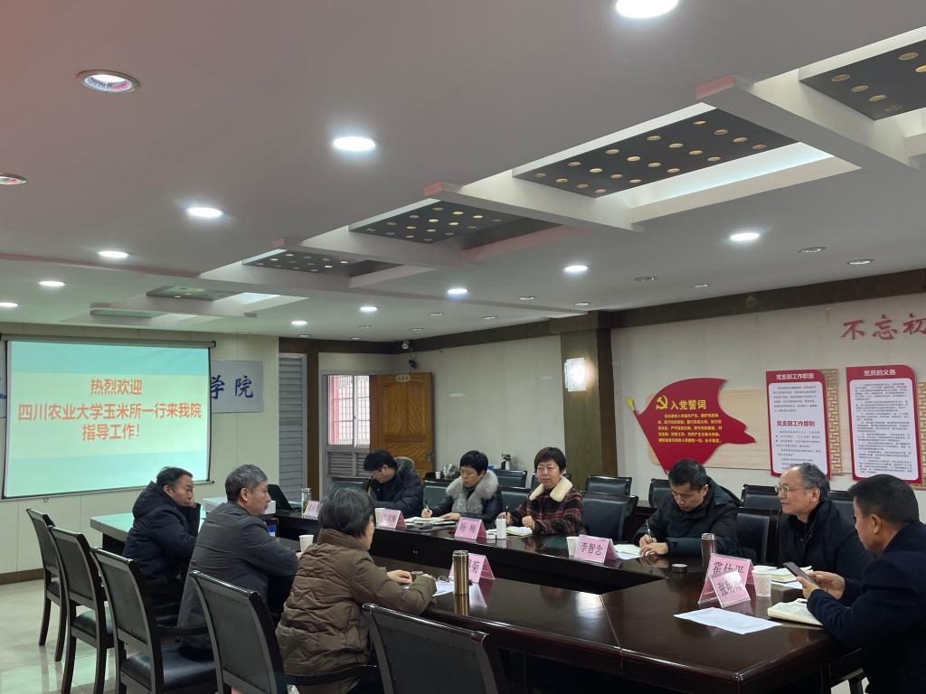 座谈会上,9728太阳集团党委书记、院长杨梅对四川农业大学玉米所一行来院考察指导表示热烈欢迎,并介绍了9728太阳集团基本情况、发展历程、科研领域及研究进展等;高世斌所长向与会人员介绍了四川农大玉米所的教育和科研团队实力、平台优势、研究方向和取得的重大科研成果。四川农业大学院士办公室主任、博士生导师曹墨菊教授和博士生导师、我国著名饲草玉米专家唐祈林教授向9728太阳集团与会人员介绍了各自的研究方向和成果。