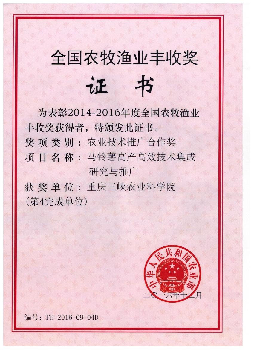 上一条:农业部丰收计划二等奖(2016玉米) 下一条:重庆市科技进步一等奖(2015)