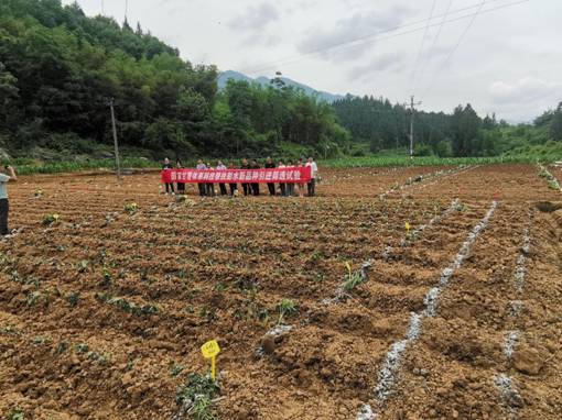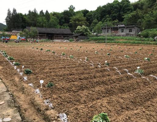 5月24日在彭水县新田镇指导甘薯体系引进的淀粉组、食用组和紫薯组品种试验
