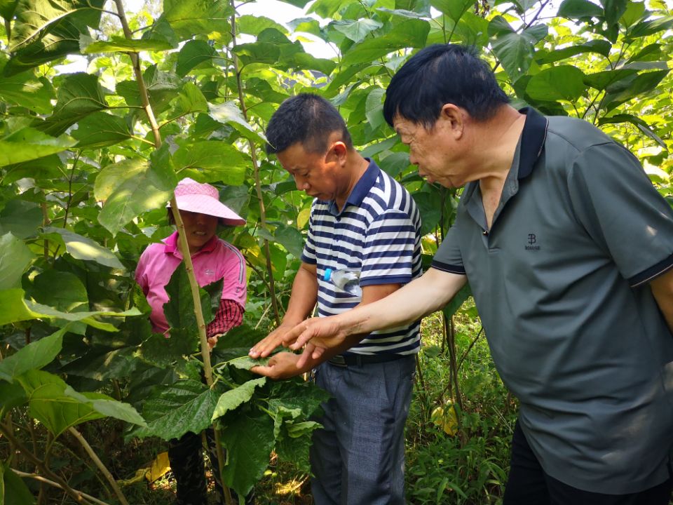 养蚕大户周红去年进入蚕桑产业,流转桑园120余亩、蚕棚2500㎡,全年养蚕135张,养蚕收入近25万元,取得开门红。今年加大投入,新建蚕棚600㎡,计划全年养蚕250张。半个月前她遇上了烦心事,近一半的桑园桑叶叶面变黑,叶背密生一种白色的小虫,一遇吹风或振动就乱飞,采叶的人感到扑脸,重庆三峡农业科学院蚕桑团队通过传递图片及视频资料进行远程会诊后确诊此虫为“桑粉虱”,分析其原因,系部分桑园地势低洼、通风透气不良,加上前期降雨较多导致高温多湿所致,建议其使用无人机低空喷40%乐果乳油1000倍液进行防治。8月10日蚕桑团队深入周红的桑园,实地检查8月6日用药后的防治效果,防效在95%以上。周红悬着的心落地了,对完成全年养蚕计划信心满满。蚕桑团队查看周红的养蚕大棚,正在饲养的第七批蚕,正处于四龄末期的蚕儿健康、整齐,并就高温多湿条件下如何养好蚕进行了指导。