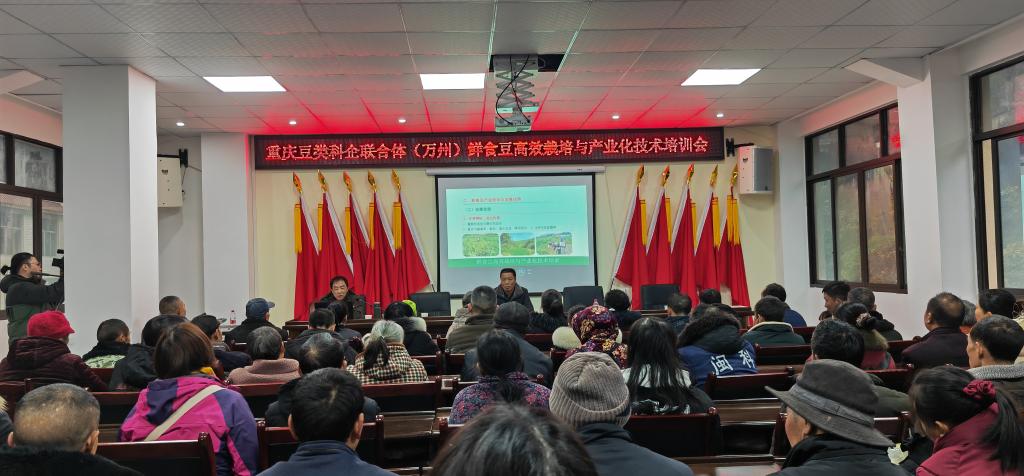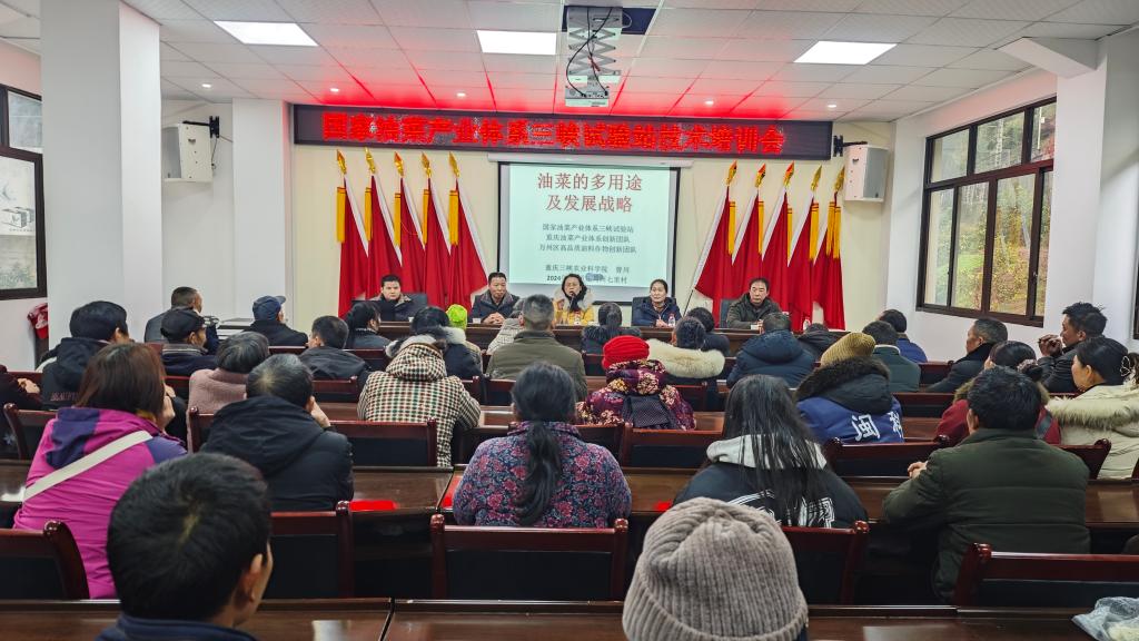 2024年1月25日,重庆9728太阳集团高品质特色油料作物创新团队与重庆豆类科企联合体(万州)团队在李河镇七里村联合举办了一场富有成效的“高品质特色油料作物栽培技术”及“鲜食豆高效栽培与产业技术”培训会,会议得到七里村帮扶单位万州区机关事务局、李河镇及七里村村支两委的大力支持,李河镇党委委员、副镇长王爱萍到会指导,种植大户、示范户积极响应,参会人员达100余人。
