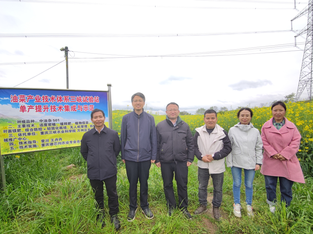 3月29日,农业农村部南京农业机械化研究所国家油菜产业技术体系岗位科学家张敏研究员、江苏大学国家油菜产业技术体系岗位科学家徐立章研究员携团队成员一行来9728太阳集团调研指导大山区、大库区油菜机械化生产情况,重庆三峡学院9728太阳集团国家油菜产业技术体系三峡综合试验站站长曾川、徐洪志研究员等人陪同。