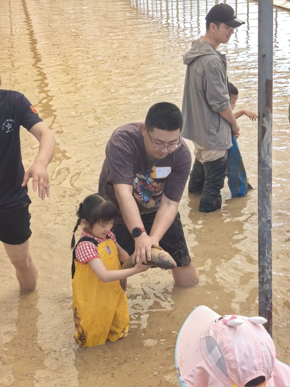 活动当日,孩童们纷纷挽起裤管踏入泥泞的水田,在院水稻专家黄世炎的指导下开启水稻插秧体验。专家首先躬身示范,详细讲解“浅插稳苗、行列齐整”的插秧要诀,随后指导亲子家庭沿着标有行距标记的定位绳,以倒退步态将秧苗笔直插入水田。完成水稻插秧后,孩子们欢腾着奔向邻接的水田,在没过脚踝的水花中追逐游窜的稻田鱼。这一环节的设计灵感源于三峡库区推广的“稻渔综合种养模式”。稻鱼共生可实现“一季稻、两茬鱼”,鱼粪肥田、鱼食害虫,既提升稻田综合效益,又保障生态安全。